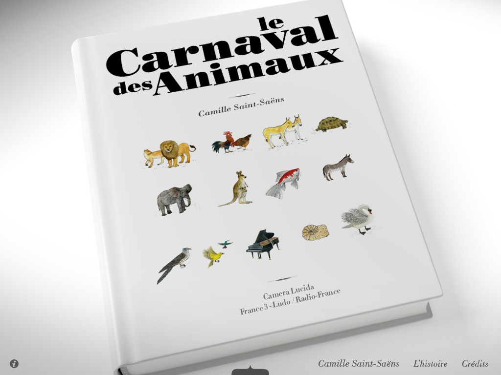 Participation au livre interactif pour iPad "Le Carnaval des Animaux", publié par France Télévision.