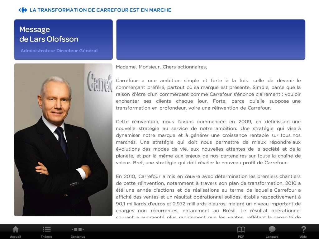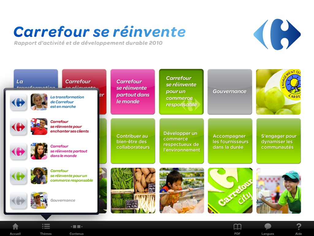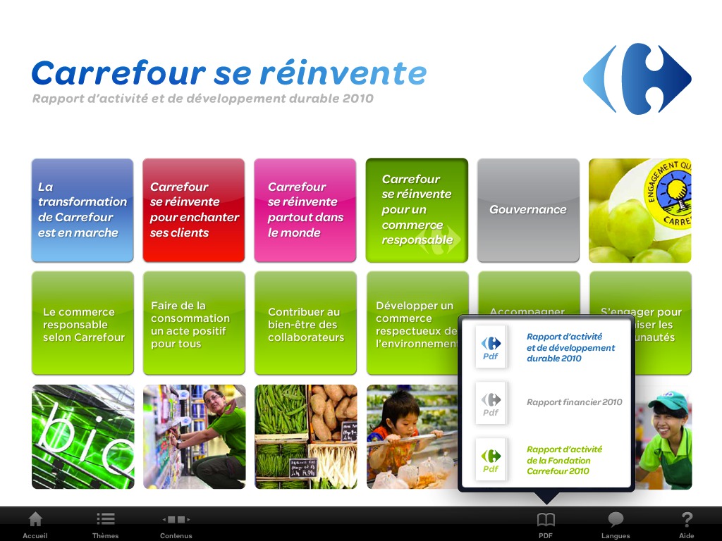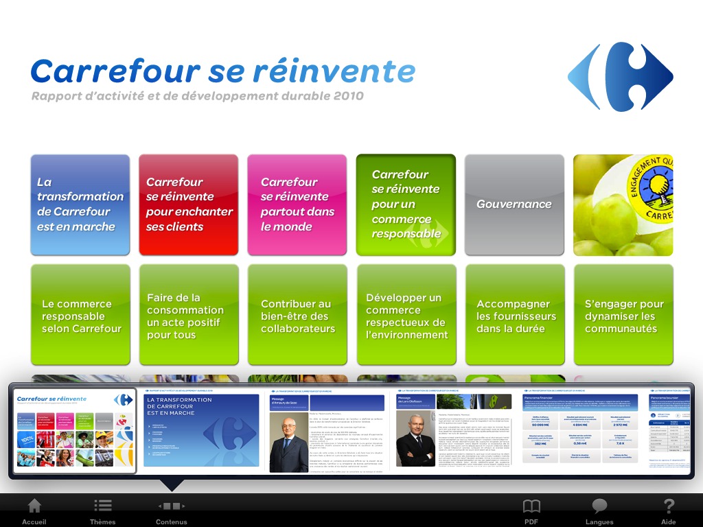 Le rapport d'activité annuel du groupe Carrefour, présenté sous la forme d'un livre interactif iPad !