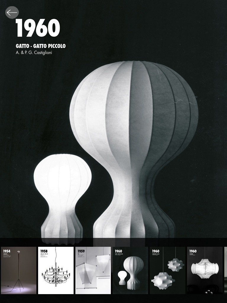 ; La marque italienne Flos présente via cette application iPad 50 ans de création dans le domaine du luminaire haut de gamme.